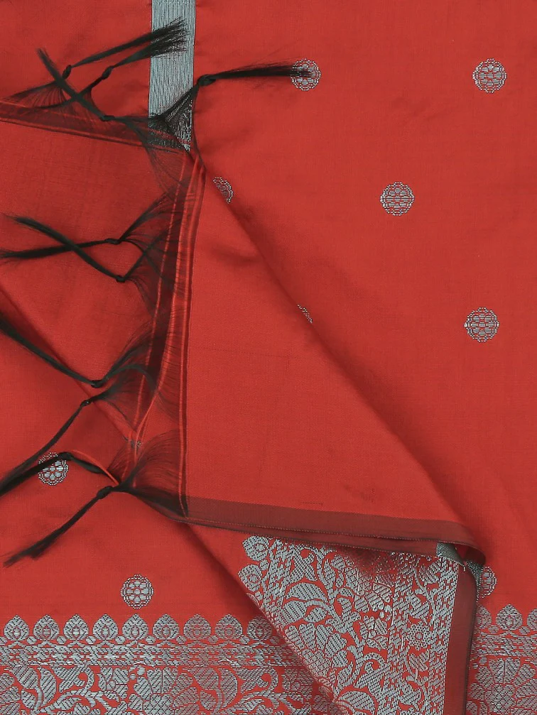 • This Fine Banarasi  dupatta is adorned with beautiful woven motifs along with rich silver zari border.