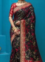 Home Saree Black Banarasi Silk Jacquard Woven Traditional Saree Festive Wear