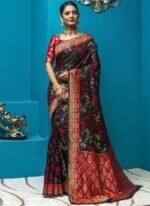 Black Banarasi Silk Jacquard Woven Traditional Saree Festive Wear