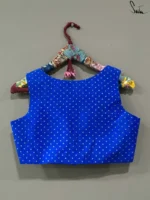 Home Blouse Blue Silk Sleeveless V Neck Benarasi Blouse