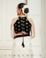 - Half And Half Full Sleeve Blouse With Zari nd Sequins Embroidered Black Velvet and Off-White Thread and Sequins Embroidered Net.