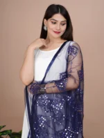 Indian Bollywood Solid Designer Net Sequence Dupatta, Scarf, Shawl, Chunni Latest Wedding Women Dupatta with Matching Lace, Gift for Her