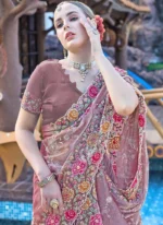 The Dusty Lavender Organza Floral Thread Embroidered Dusty Lavender Sequins Stone Embossed Saree is a luxurious blend of timeless elegance and contemporary style designed to make a statement at any festive or special occasion. This saree is meticulously crafted from premium fabric, showcasing a rich Dusty Lavender hue that exudes vibrancy and celebration. The intricate floral thread embroidery along the border adds a touch of traditional artistry while the sequins and stone embossing bring in a modern dazzling effect that catches the light with every movement ensuring you stand out in a crowd.