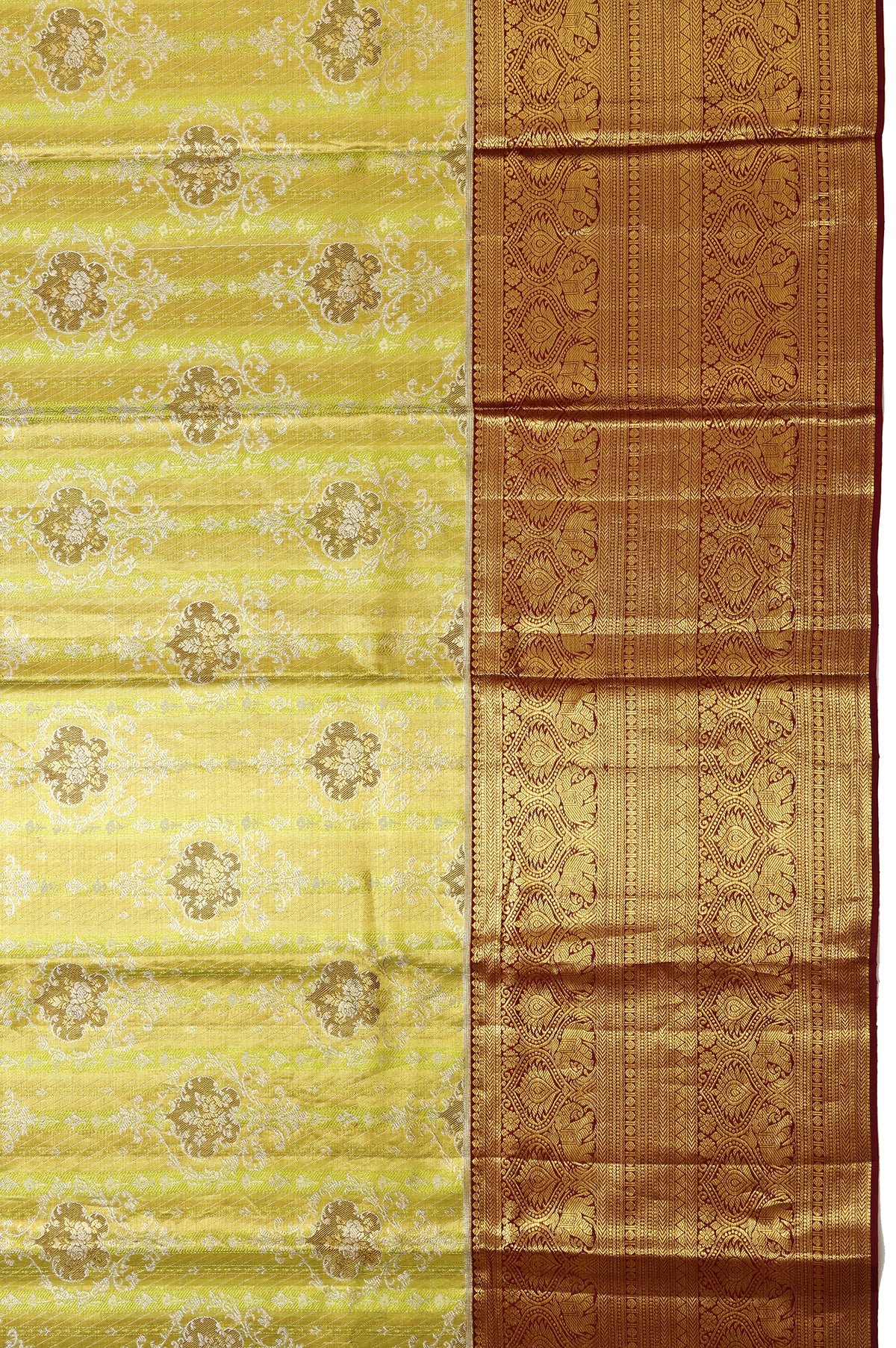 Yellow Kanchipuram Silk Saree with Onion Pink Zari Pallu ₹50,000.00