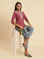 Look ethereal in this Aari work kurti, freshly crafted in the lightness and comfy feel of cotton.