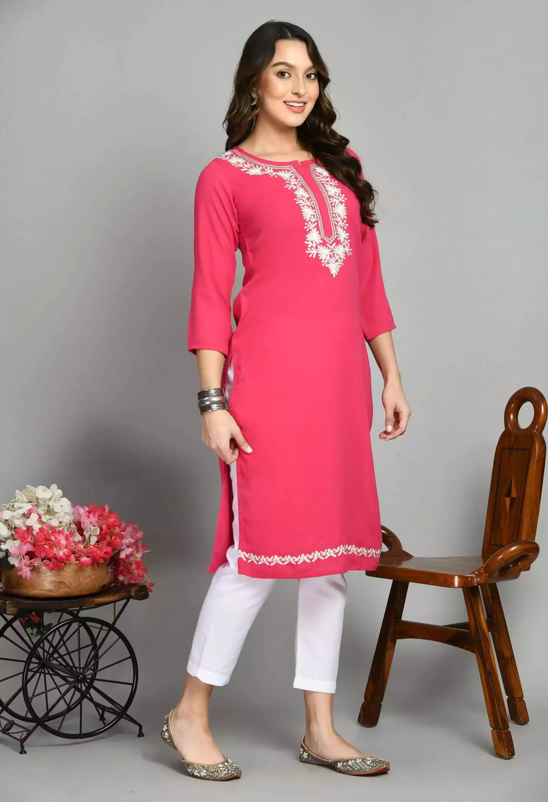 Look ethereal in this Aari work Kurti, crafted with Zari work.