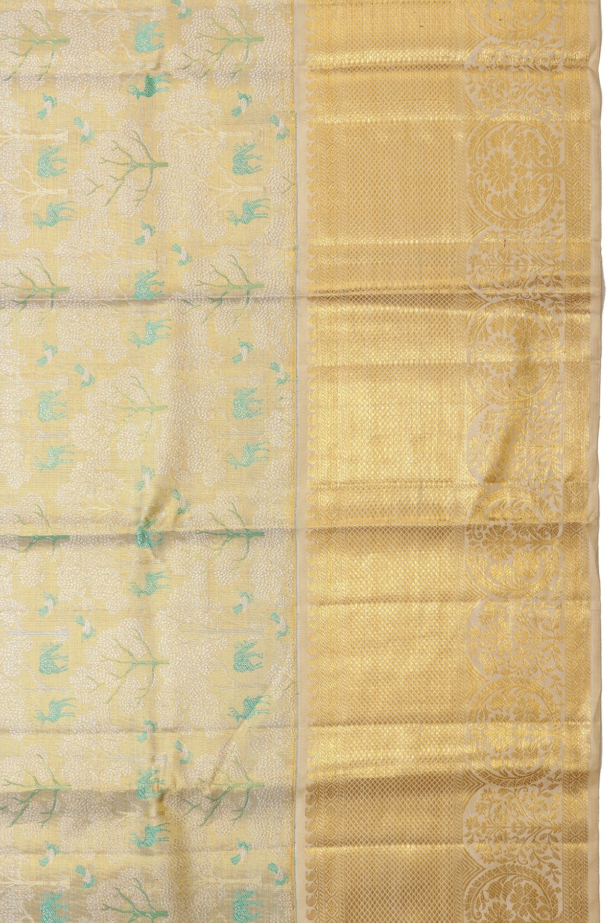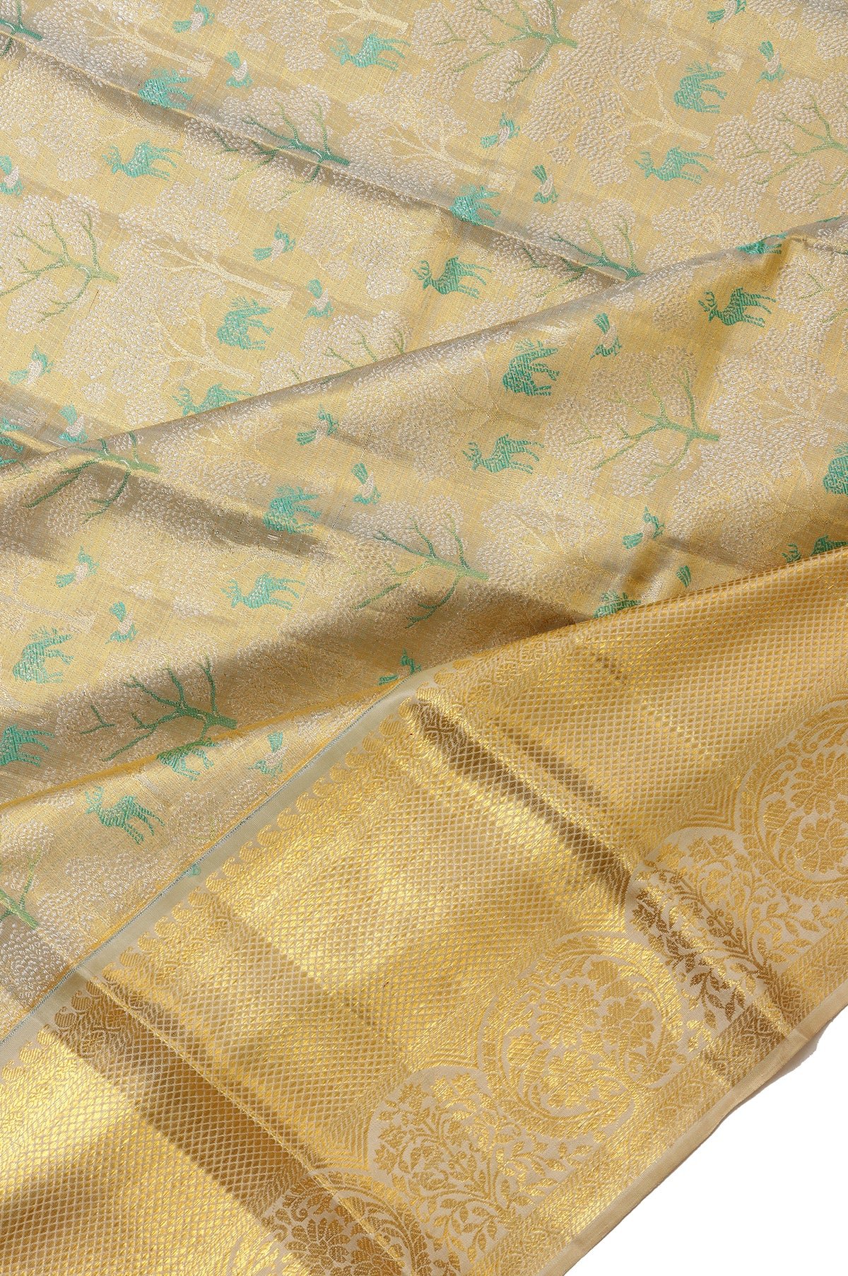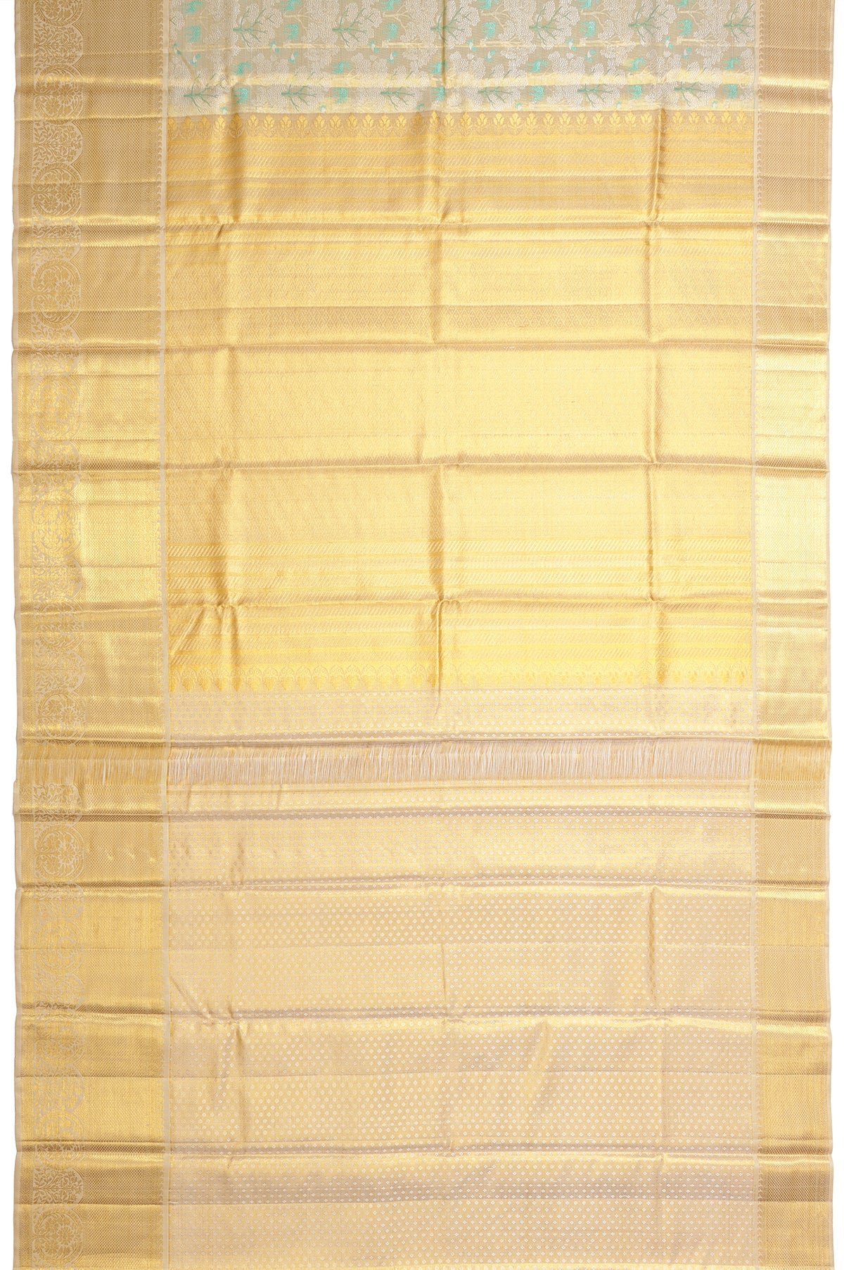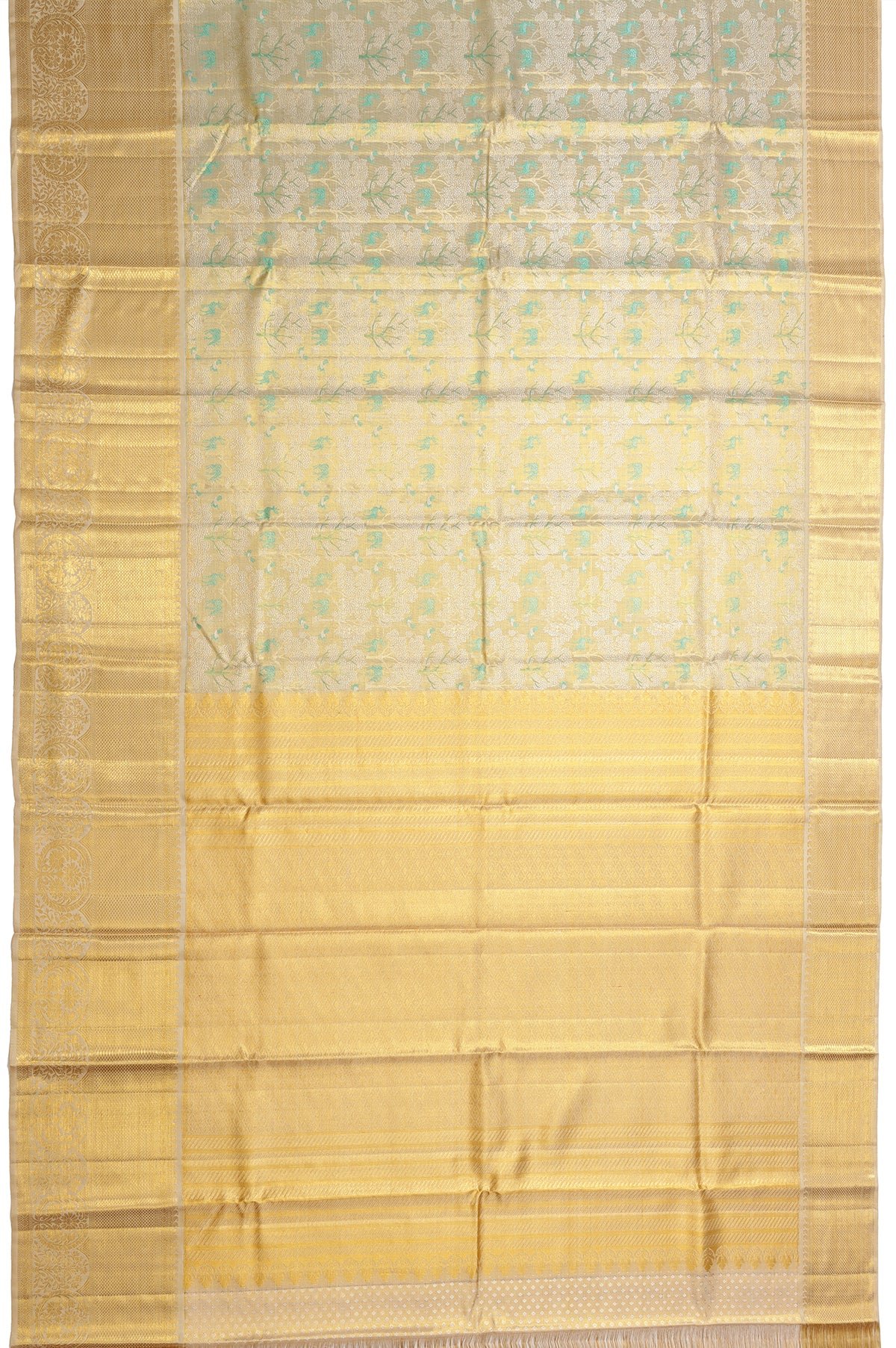 Gold Kanchipuram Silk Saree with Floral Design and Sea Green Border